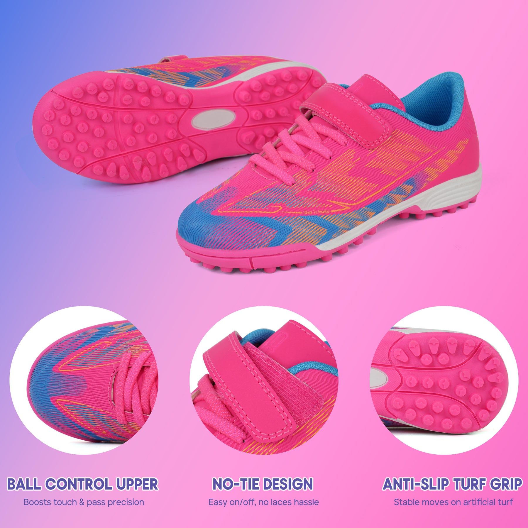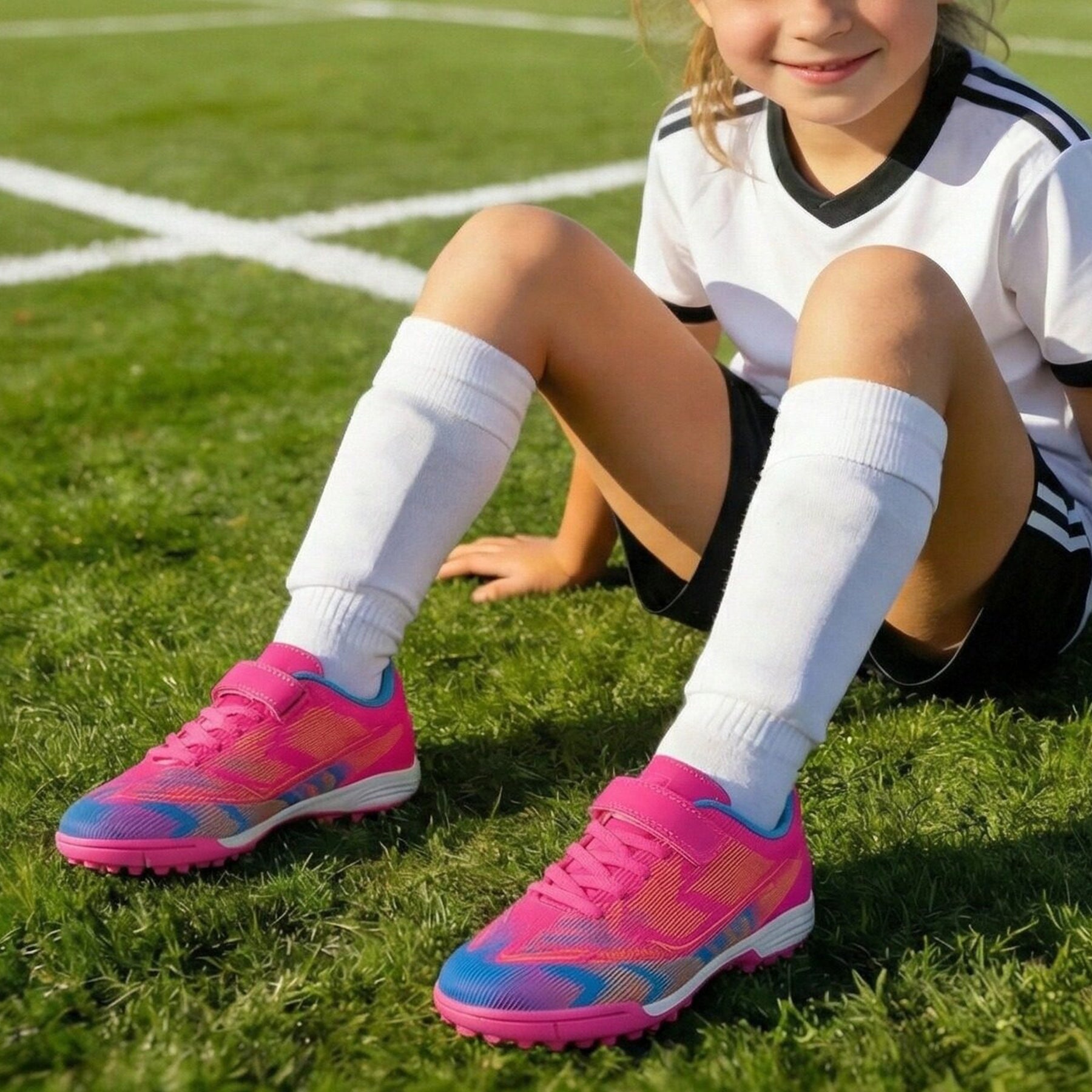 • Bright Neon Colors: High-visibility neon design helps kids stand out on the field and boosts confidence with every step.