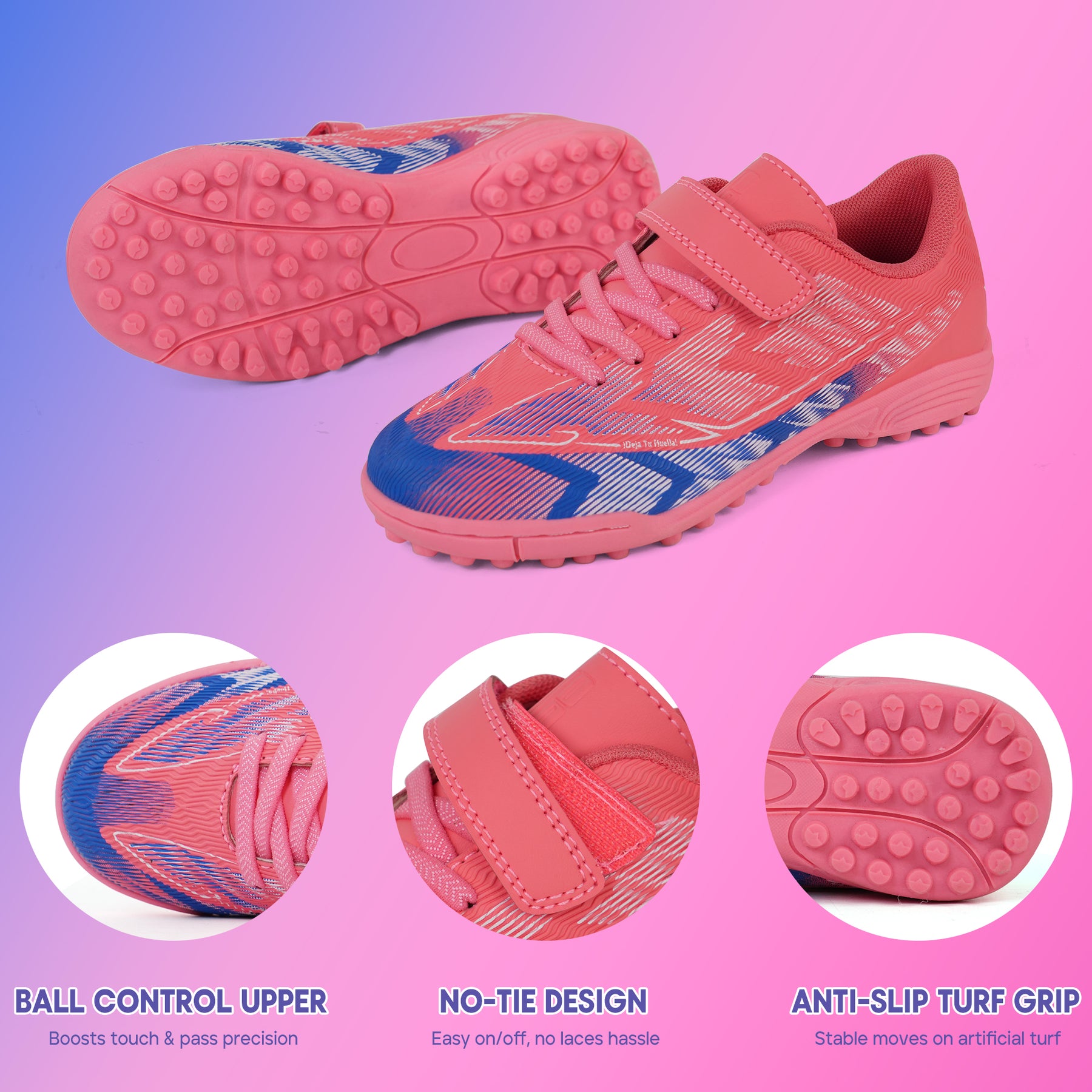 • Wave-Textured Upper: Playful wave patterns boost ball control while adding a trendy, kid-approved style.